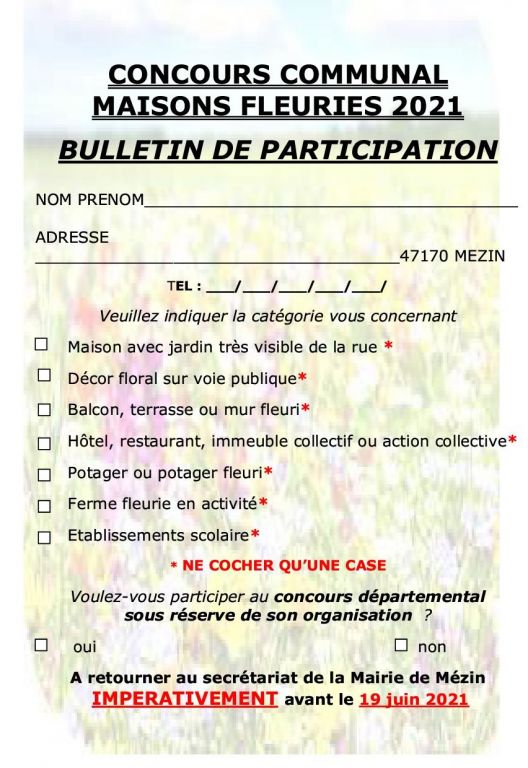 Comme chaque année, la commune de Mézin organise le concours communal des maisons fleuries.