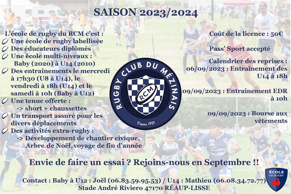 C'est bientôt la rentrée !! Il est l'heure de préparer vos sacs et vos crampons !Reprise le 06/09 pour les U14 et le 09/09 pour toutes les autres catégories.