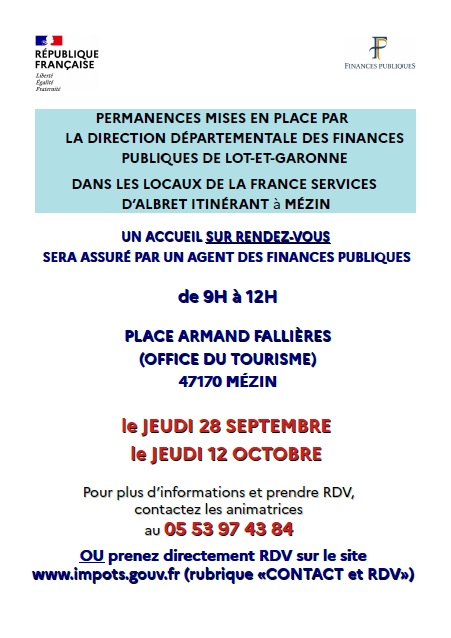 Les impôts tiendront 2 permanences à Mézin.