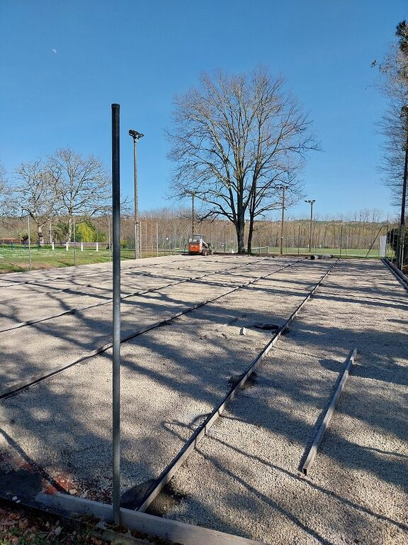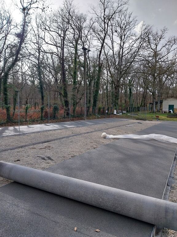 𝐏𝐫𝐞𝐦𝐢𝐞̀𝐫𝐞 𝐞́𝐭𝐚𝐩𝐞 𝐝𝐞𝐬 𝐭𝐫𝐚𝐯𝐚𝐮𝐱 𝐬𝐮𝐫 𝐥𝐞𝐬 𝐜𝐨𝐮𝐫𝐭𝐬 𝐦𝐮𝐧𝐢𝐜𝐢𝐩𝐚𝐮𝐱 : Transformation d'un court de tennis en textone par procédé béton poreux