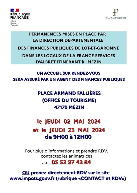 𝐏𝐨𝐮𝐫 𝐩𝐫𝐞𝐧𝐝𝐫𝐞 𝐑𝐃𝐕: Téléphoner au 05 53 97 43 84 (laisser un message avec les coordonnées pour être rappelé) ou prendre RDV sur le site internet https://www.impots.gouv.fr/contacts