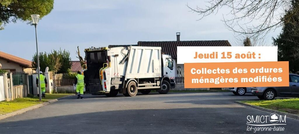 En raison du jour férié, la collecte des ordures ménagères en porte à porte du jeudi 15 août 2024 sera modifiée.