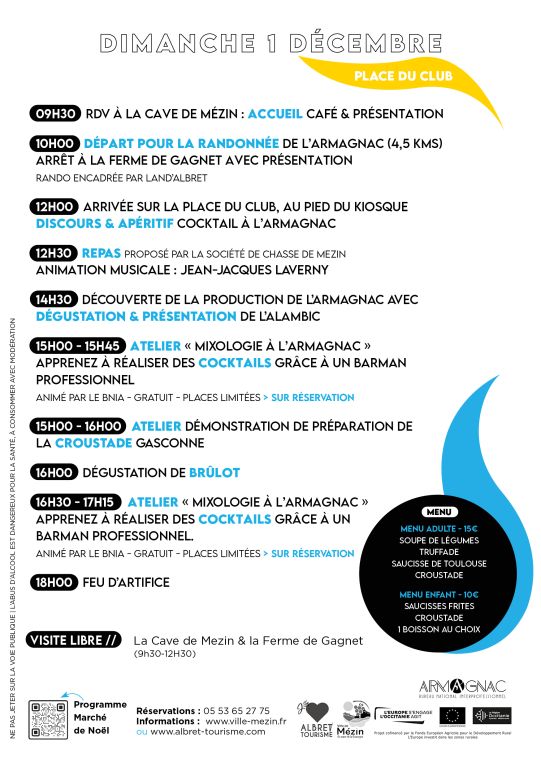 Randonnée de l’armagnac, marché de producteurs avec animation DJ, atelier mixologie, démonstration de fabrication de croustades gasconnes, rencontre avec des producteurs, un programme festif qui se déroulera, cette année, sur la place du club, au pied du kiosque, à Mézin.