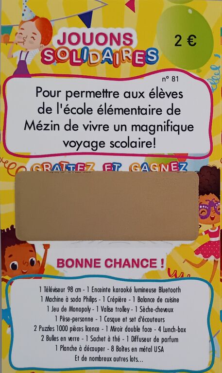 Des tickets de tombola à gratter seront également en vente avec de nombreux lots à gagner!